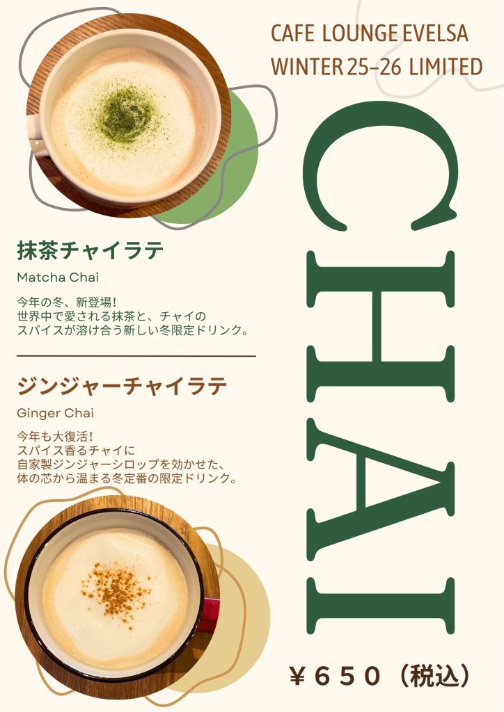 毎年大好評のチャイに今年は抹茶味も加わって新登場!
